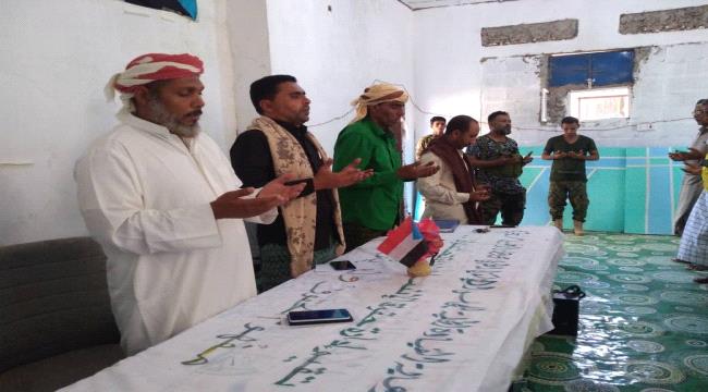 وفي مستهل الاجتماع وقف الحاضرون دقيقة حداد وتمت قراءة الفاتحة على روح الشهيد طاهر على عيسى الذي استشهد على قناصة تابعين لمليشيا الإخوان الإرهابية يوم الجمعة الماضي في منطقة حيبق.