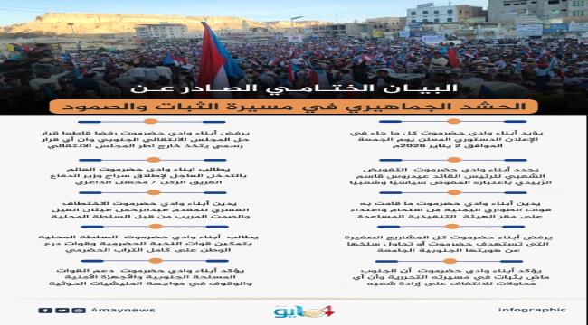 البيان الختاممي الصادر عن الحشد الجماهيري في مسيرة الثبات والصمود.. انفوجرافيك