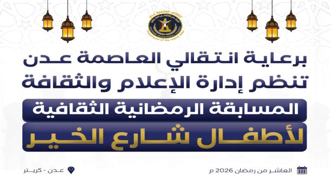 برعاية القيادة المحلية لـ المجلس الانتقالي الجنوبي في العاصمة عدن، أعلنت إدارة الإعلام والثقافة بانتقالي العاصمة عن تنظيم مسابقة رمضانية ثقافية مخصصة