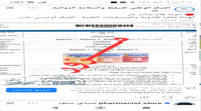 أصدرت الهيئة العليا للأدوية والمستلزمات الطبية – المركز الرئيسي بالعاصمة عدن تنويهاً هاماً دعت فيه المواطنين وكافة العاملين في القطاعين الصحي والصيدلا