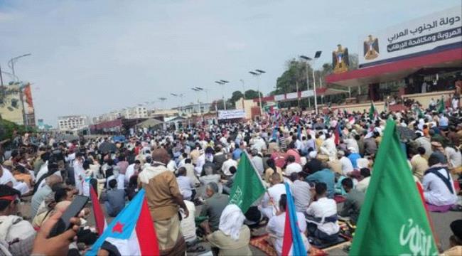 أدّى آلاف المعتصمين من أبناء العاصمة عدن، اليوم الجمعة، صلاة "جمعة الوفاء للمشروع العربي" في ساحة الاعتصام المفتوح بساحة العروض في مديرية خور مكسر، وس