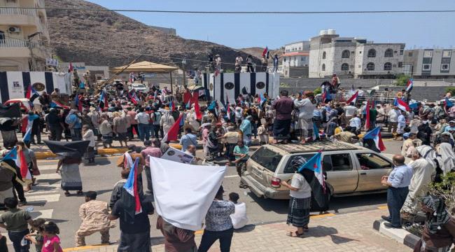المتظاهرون يفتحون الطريق المغلق بمدخل مديرية المعلا ويتوجهون نحو التوا ...