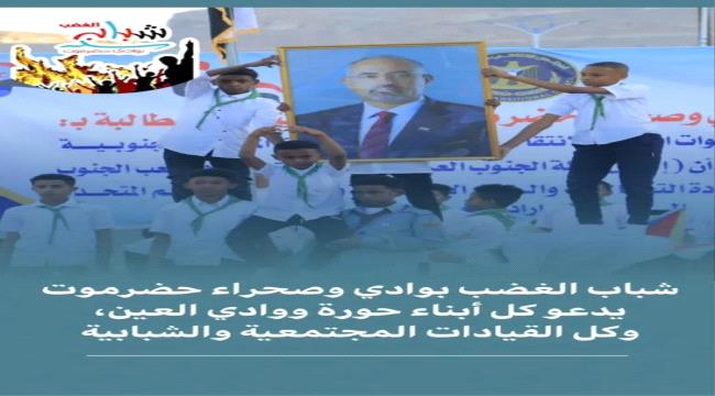 دعا شباب الغضب بوادي وصحراء حضرموت، كل أبناء حورة ووادي العين، وكل القيادات المجتمعية والشبابية، للتحرك نحو مدينة سيئون والمشاركة في المليونية الكبرى،
