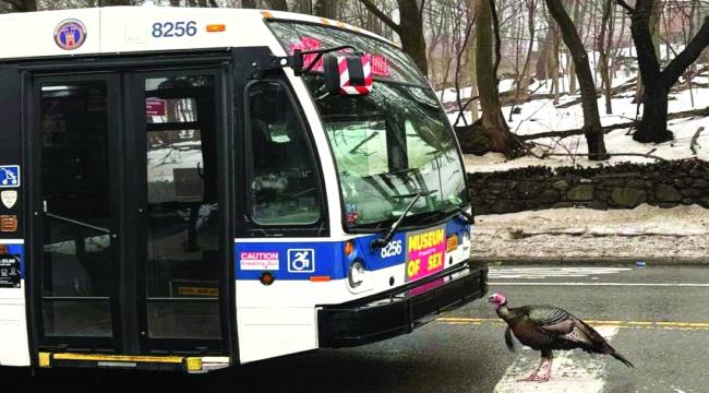 ديك رومي «يناطح» حافلة ويوقف المرور ...