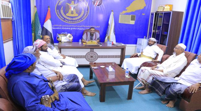 التقى رئيس الهيئة التنفيذية المساعدة للمجلس الانتقالي الجنوبي لشؤون مديريات وادي وصحراء حضرموت، محمد عبدالملك الزبيدي، اليوم الأحد، بنائب رئيس حركة إن