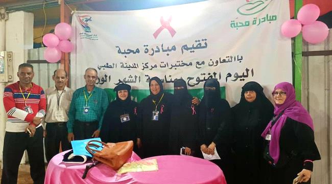 أقامت مبادرة محبة اليوم الخميس بالتنسيق مع مختبرات مركز المدينة الطبي ومشاركة المؤسسة الوطنية للسرطان اليوم المفتوح للتوعية عن سرطان الثدي في حديقة عدن نيو بمديرية كريتر بالعاصمة عدن .