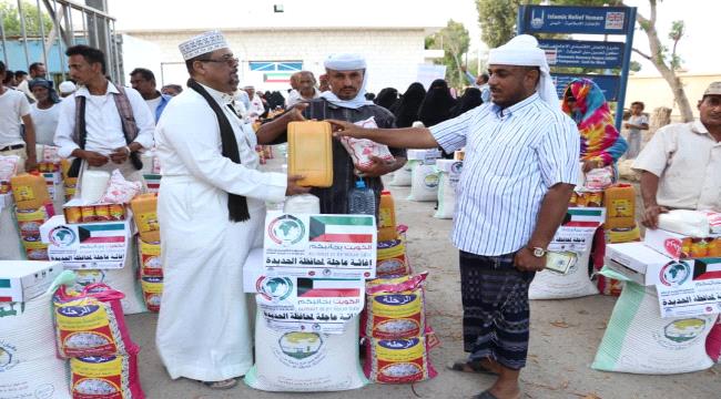 كما قاموا كذلك بتوزيع ( 100 ) سلة غذائية للأسر النازحة من محافظة الحديدة في مدينة الكود والتي شملت على : ( دقيق 50 كيلو - رز 20 كيلو - 8 لتر زيت - 36 علبة فاصوليا - سكر 2 كيو ونصف - ملح كيلو ) إضافة إلى أن الحملة تشمل أيضاً توفير وايتات للمياه والعمل على توفير خدمات العيادة الصحية - الثابته والمتنقلة - للنازحين في المحافظة ..