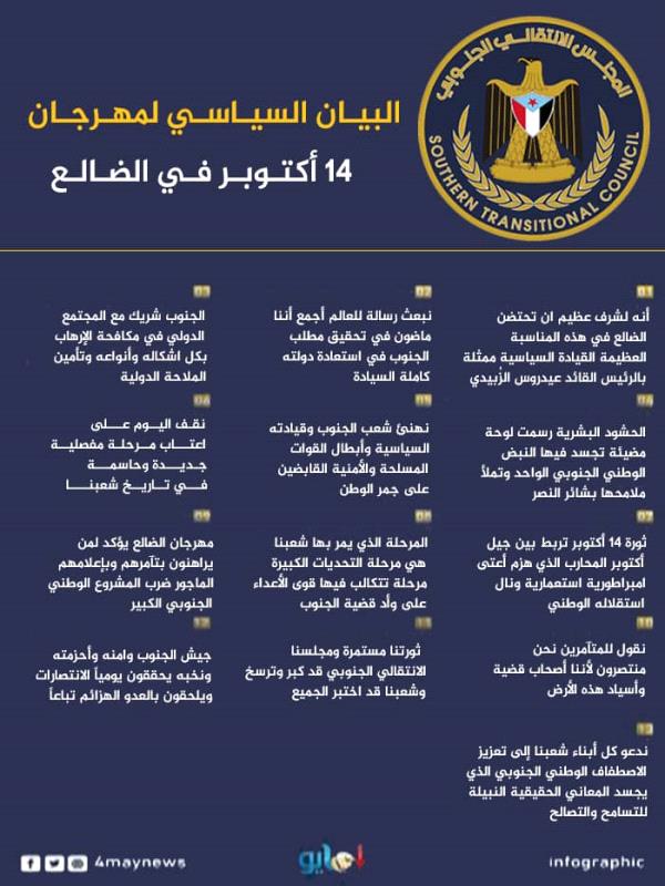 البيان السياسي لمهرجان 14 أكتوبر في الضالع
