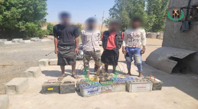 وأضاف المصدر أن قوات الحزام الأمني بقطاع الحسيني تمكنت، مساء أمس، من إلقاء القبض على أفراد العصابة متلبسين أثناء قيامهم بسرقة عدة بطاريات من إحدى الشاحنات.