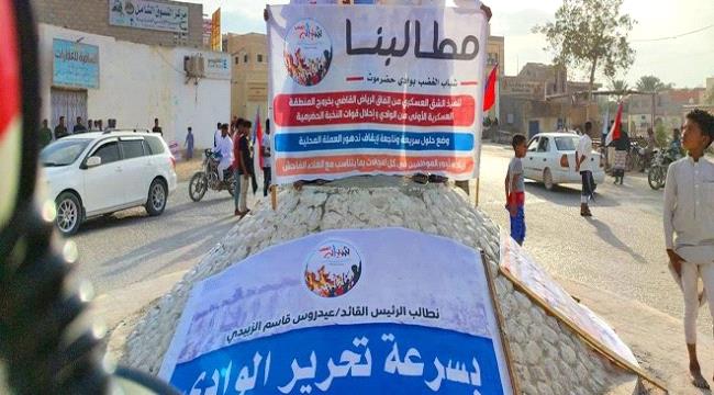 وقالوا: "يجب أن يكون الهدف المعلن للاعتصام هو تحرير كامل مديريات وادي وصحراء حضرموت وبسط السيادة الأمنية الجنوبية عليها وربط الحركة الشعبية بالمشروع الوطني الجامع للجنوب.