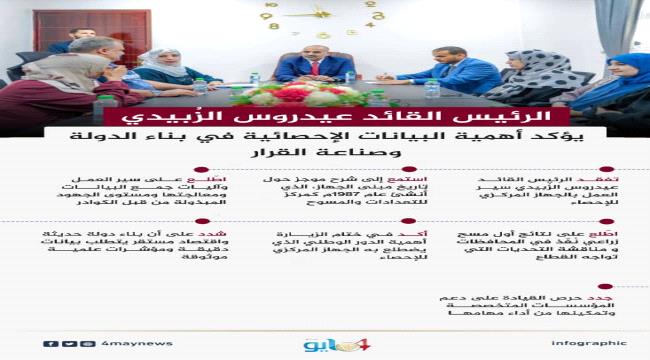 الرئيس الزُبيدي يؤكد أهمية البيانات الإحصائية في بناء الدولة وصناعة القرار.. انفوجرافيك