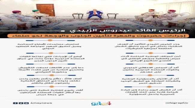 الرئيس الزُبيدي: إجراءات حضرموت والمهرة لتأمين الجنوب والوجهة نحو صنعاء.. انفوجرافيك
