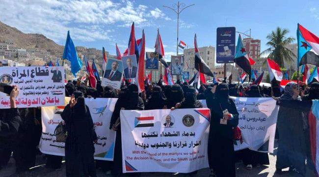 وأكد باتيس، في كلمة ترحيبية، إن هذا الحشد الجماهيري الغفير يعكس وعي وإرادة حرائر حضرموت، مشيرًا إلى أن صوت الحرائر الماجدات الحضرميات الجنوبيات سيصل إلى العالم أجمع للمطالبة بالاستقلال واستعادة دولة الجنوب العربي.