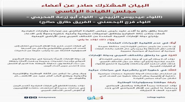 البيان المشترك الصادر عن أعضاء مجلس القيادة الرئاسي..انفوجراف