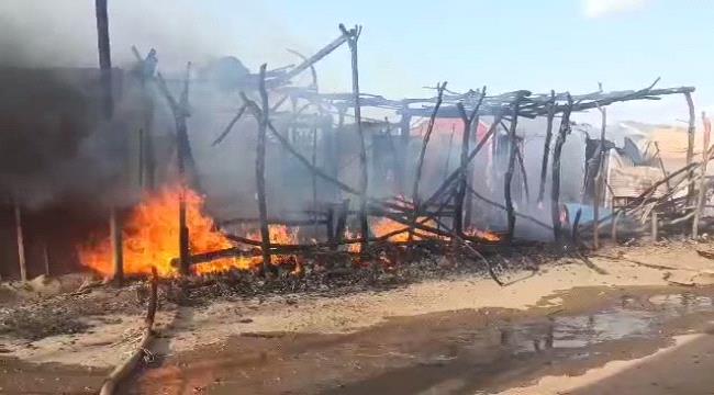 حريق في مخيم نازحين بأبين يتسبب بتشريد خمس أسر...