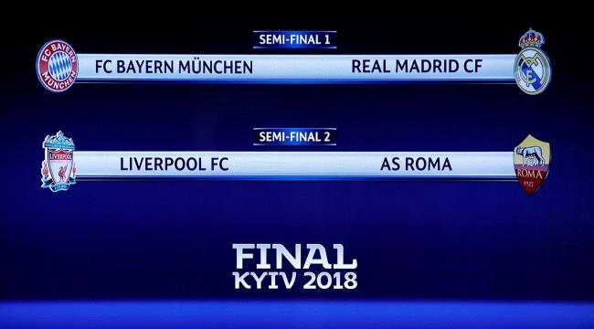 أسفرت قرعة نصف نهائي دوري أبطال أوروبا، عن مباراتين ناريتين، بعد أن أوقعت ريال مدريد حامل اللقب في الموسمين الأخيرين مع منافسه بايرن ميونخ الألماني، في حين يلعب ليفربول ضد روما.