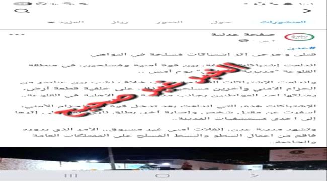 تناقلت بعض الصفحات المعروفة في مواقع التواصل الاجتماعي خبراً حول وقوع اشتباكات مسلحة في مديرية التواهي منطقة القلوعة ونود التوضيح أن الحادثة وقعت قبل