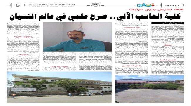 صحيفة "4مايو" زارت كلية الحاسب الآلي وتكنولوجيا المعلومات ورصدت معاناة الكلية التي تعيق العملية التعليمية في سياق التقرير الآتي: