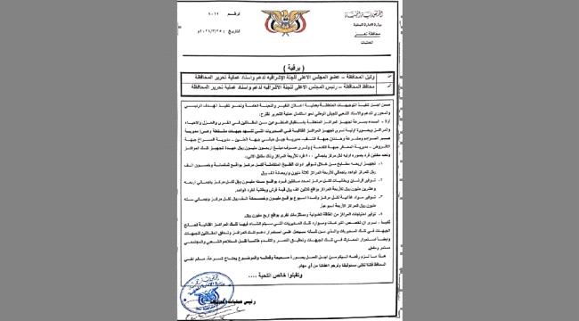 وكشفت وثيقة صادرة عن رئيس عمليات المحافظة، وجه فيها بسرعة استقبال متطوعين في مراكز قتالية في مديريات "صبر الموادم، ومشرعة وحدنان، جبهة الشقب، ومديرية جبل حبشي جبهة العنين، مديرية المسراخ جبهة الاقروض، مديرية المعافر جبهة الكدحة".