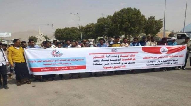 شهد محيط شركة النفط ومكتب الخدمة المدنية في مدينة المكلا، بحضرموت صباح اليوم الأحد، وقفة احتجاجية.