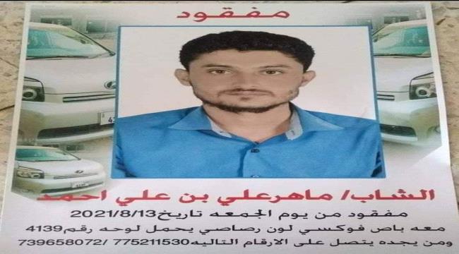 أعلنت أسرة الشاب ماهر علي بن علي عن مكافأة مالية وقدرها مليون ريال لمن يدلي بمعلومات عن ابنهم المختفي منذ شهر في العاصمة عدن