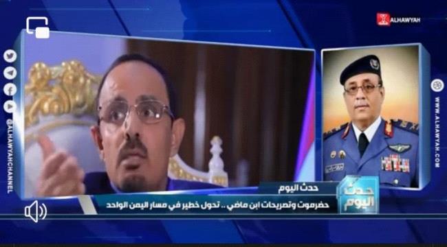 بثت قناة الهوية التابعة لمليشيات الحوثي، حلقة كاملة لمهاجمة محافظ حضرموت مبخوت بن ماضي بعد تصريحاته الأخيرة بشأن طبيعة تواجد المنطقة الأولى، والتي قال إن منتسبيها ينتمون للشمال والأولى بهم تحرير مناطقهم.