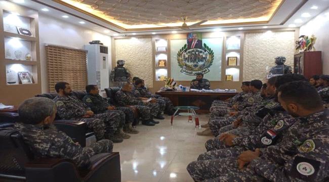 جاء ذلك خلال ترأس العميد أحمد مهدي بن عفيف اليوم اجتماعا لقادة المواقع (المنشآت) وذلك لمناقشة سير تنفيذ الخطة الأمنية وتأمين المؤسسات الحكومية خلال شهر رمضان.