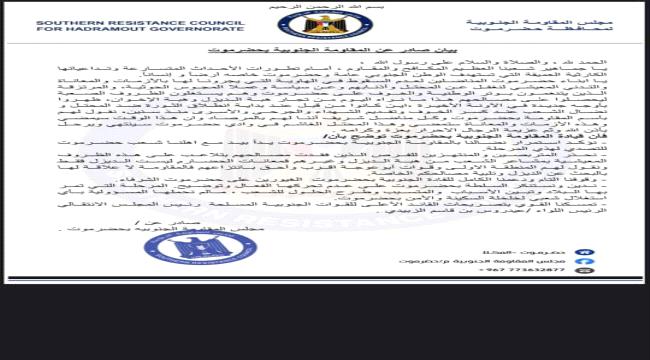 صادر عن /مجلس المقاومة الجنوبيه بحضرموت .
