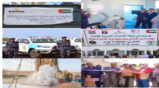 لا تزال أذرع دولة الإمارات العربية المتحدة البيضاء تمتد إلى مختلف القطاعات في محافظات الجنوب، عبر تدخلاتها الإنسانية والتنموية الاستثنائية والحاسمة من خلال فرقها الإنسانية المتمثلة بمؤسسة خليفة بن زايد للأعمال الإنسانية وهيئة الهلال الأحمر الإماراتي يأتي ذلك بتوجيهات الشيخ محمد بن زايد آل نهيان، رئيس دولة الإمارات، ومتابعة الشيخ منصور بن زايد آل نهيان، نائب رئيس مجلس الوزراء وزير ديوان الرئاسة في الإمارات، رئيس مؤسسة خليفة للأعمال الإنساني.