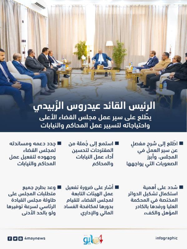 الرئيس الزُبيدي يبحث مع الشيخ البركاني سُبل تضافر الجهود لتعزيز الأمن والاستقرار في المحافظات المحررة..انفوجراف