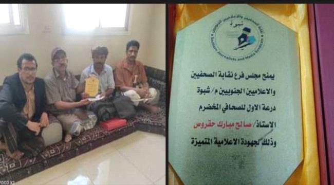 ومنح مجلس نقابة الصحفيين والاعلاميين الجنوبيين فرع شبوة، الصحفي صالح حقروص درع التميز.