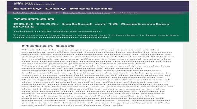 أ:المقدمة : تكمن قيمة هذا الدراسة المتواضعة في إخضاع مذكرة البرلمان البريطاني رقم (١٩٣٣) والصادرة في تاريخ ١٦/٩/٢٠٢٥ عن قضية شعب الجنوب للدراسة والتحل