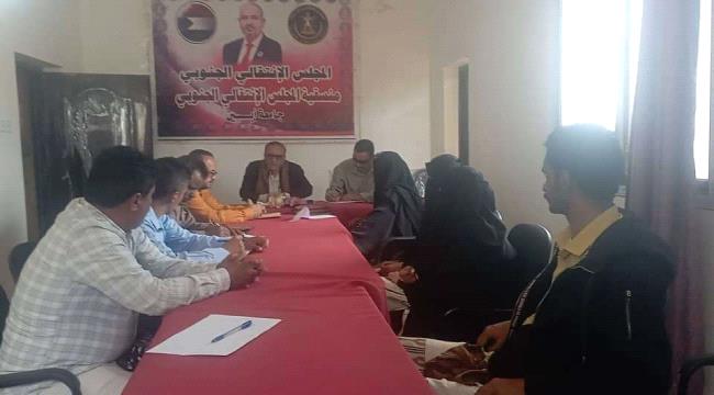 عقدت الهيئة التنفيذية لمنسقية المجلس الانتقالي الجنوبي في جامعة أبين، اليوم الاثنين، اجتماعها الدوري لشهر يناير الجاري 2026، برئاسة الدكتور يسلم باللي